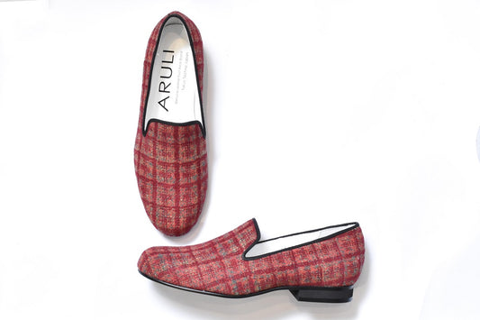 0001 イタリアンチェックツイードオペラシューズ AL2520K Redcheck 木型 . C1813