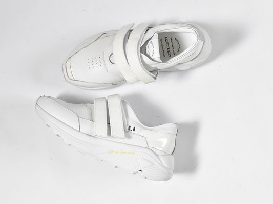 0001 Round Toe Double Velcro High tech Leather Sneakers AL2551SN White/White 木型 . C1699