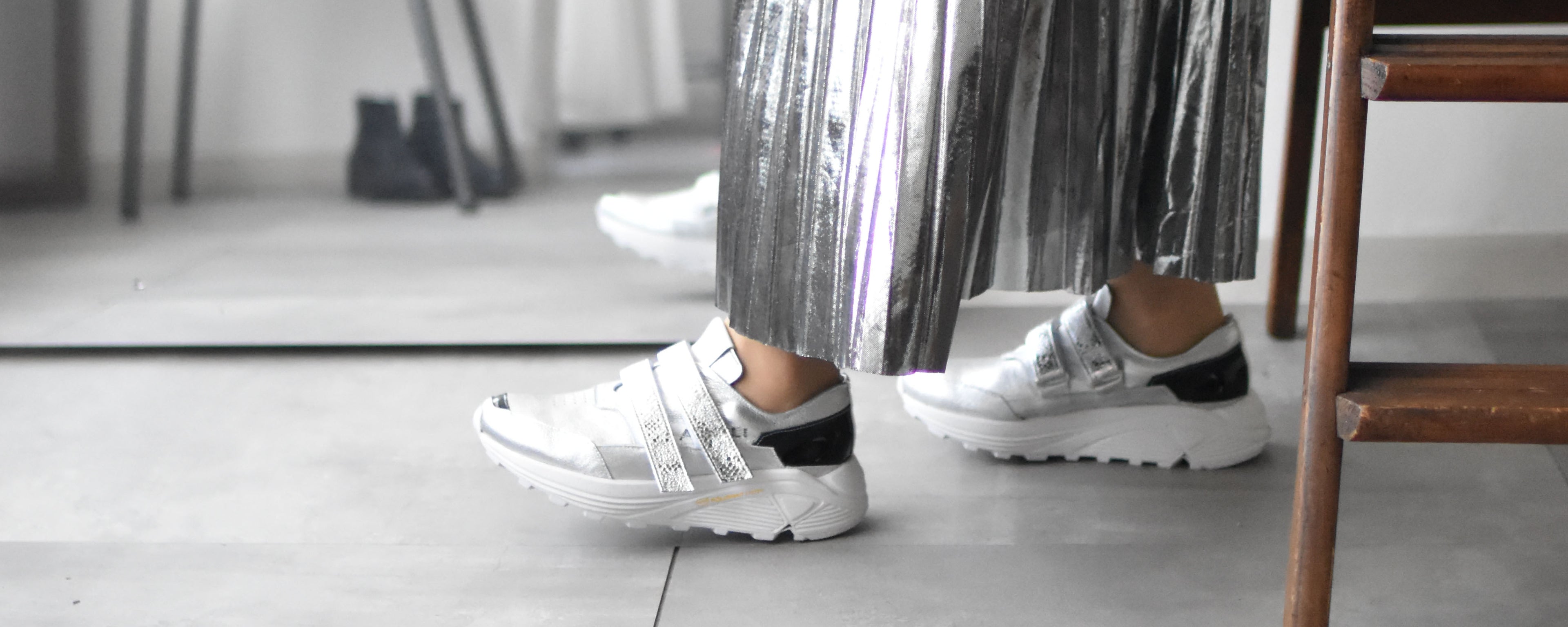0001 Round Toe Double Velcro High tech Leather Sneakers AL2551SN Silvercombi 木型 . C1699