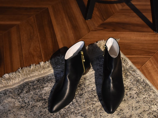 00001 ポインテッドバックジップショートブーツ AL2331SB Black 木型No.X1395