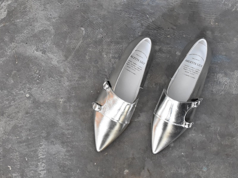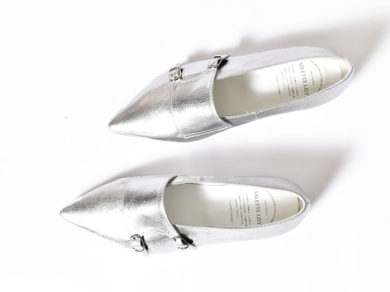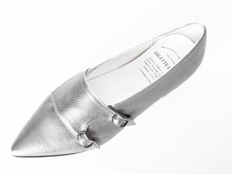 1016 ポインテッドダブルモンクストラップシューズ AL2407K Silver 木型No.A296