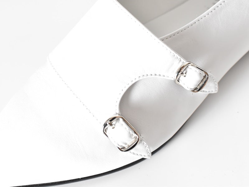 1016 ポインテッドダブルモンクストラップシューズ AL2407K White 木型No.A296
