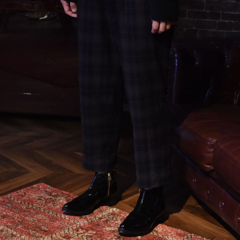 マニッシュなフォルムが印象的なショートブーツ。少し厚底のボリュームあるソールはスポンジ材を重ねて作られているので見た目よりも軽量で、履きやすく疲れにくい仕様。