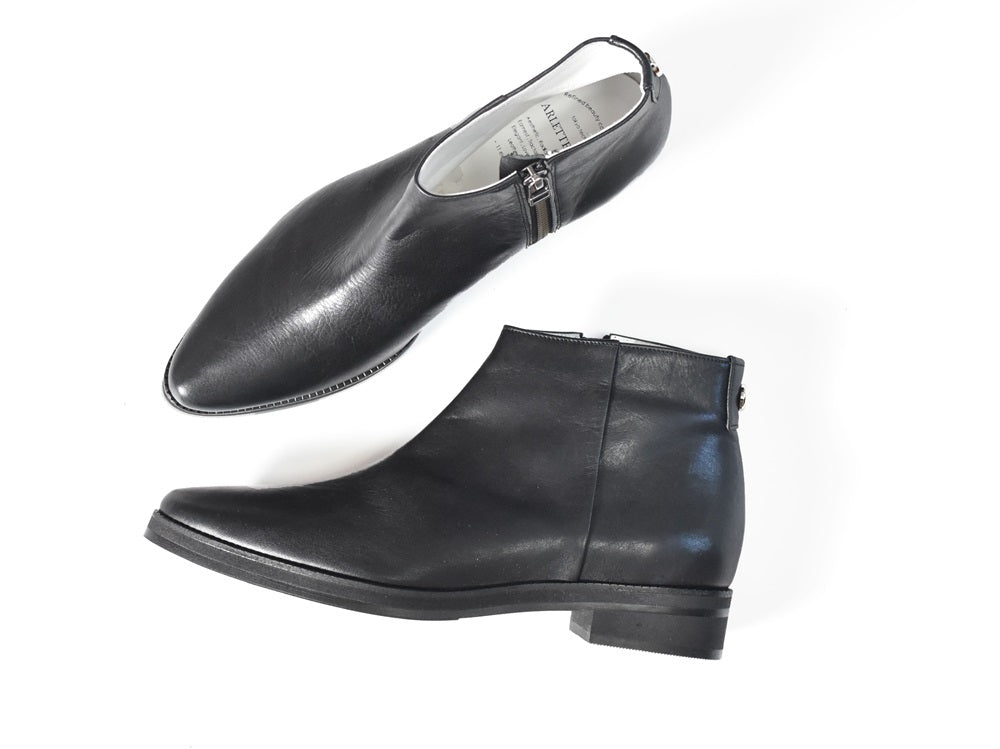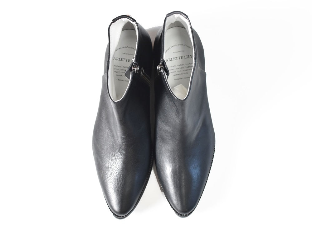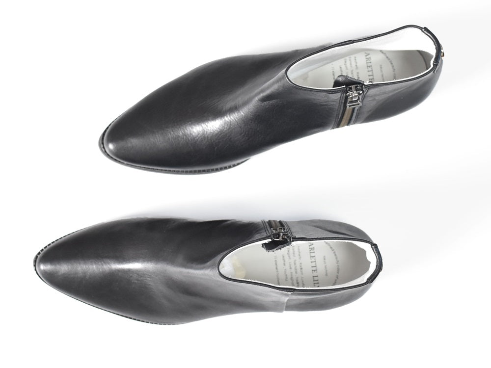 021 ポインテッドワンポイントスタッズショートブーツ AL2477SB Black 木型No.G1729