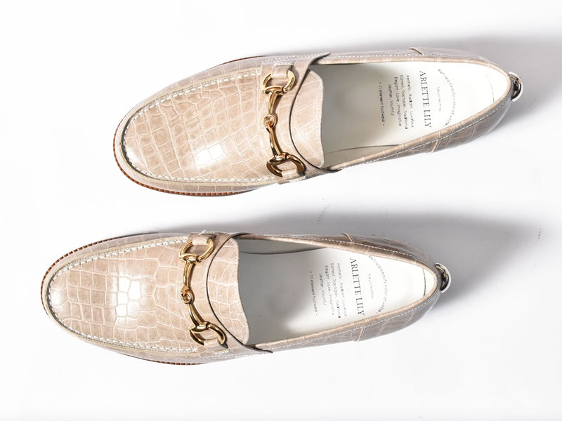 008 ラウンドトウビットローファー (クロコダイル型押しレザー) AL2103K Beigecroco 木型No.C1813