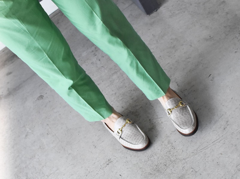 普遍的なデザインであるビットローファー、かかとの楕円型のスタッズがバックショットからのアイコンの役割をして他とは違うローファーを楽しむことが出来ます。