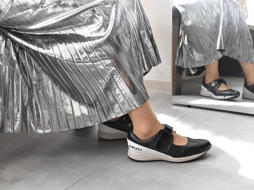 0001 Wingtip One Strap Velcro Sneakers AL2525SN Blackcombi 木型 . F1888