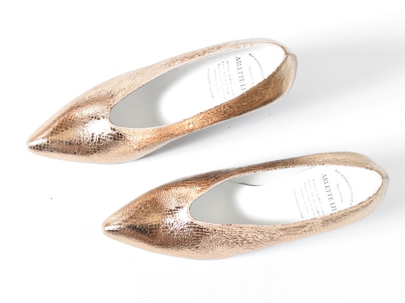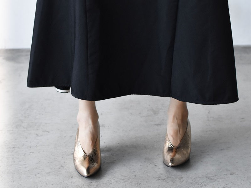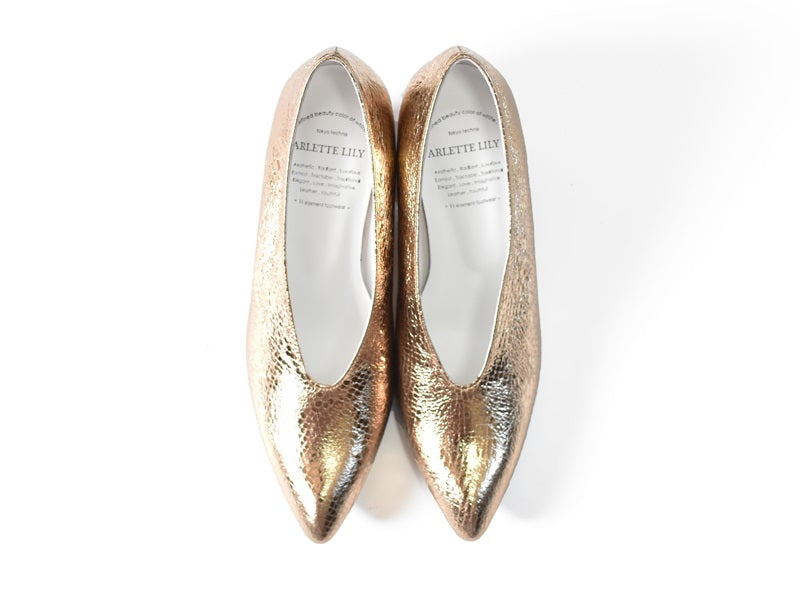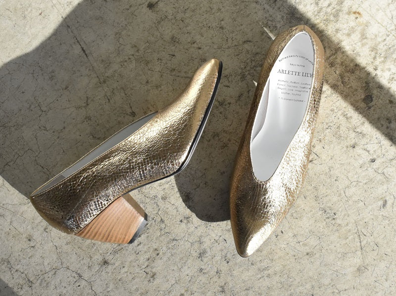 ARLETTE LILYの定番の木型ですが、このデザインが一番この木型を生かせていると思います。鳥の嘴のようなトウ先のフォルムも、甲の浮き上がるラインも木型の特徴を最大限にいかしたアイテムです。