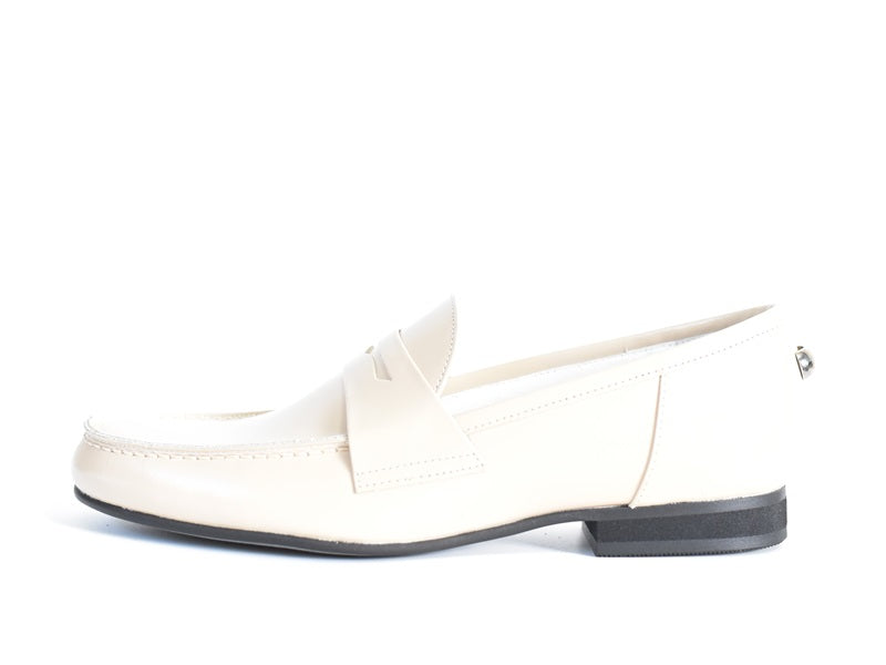 ソール周りもすっきりとライトな雰囲気とガラスレザーの光沢感が大人っぽい仕上がりに。踵のスタッズがポイントで、普遍的なデザインだからこそ他にはないワンポイントアクセントで可愛らしい靴。