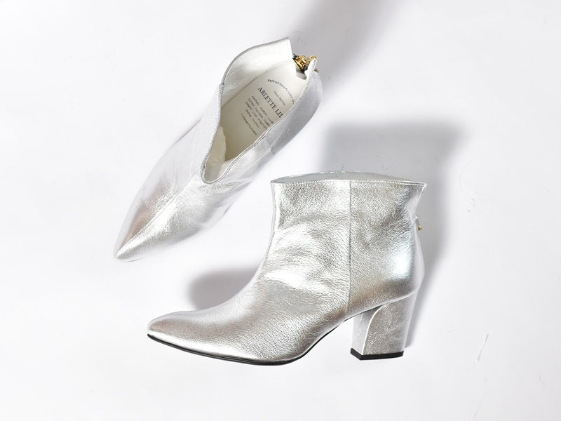 1022 ポインテッドバックジップショートブーツ AL2331SB Silver 木型No.X1395