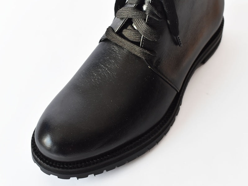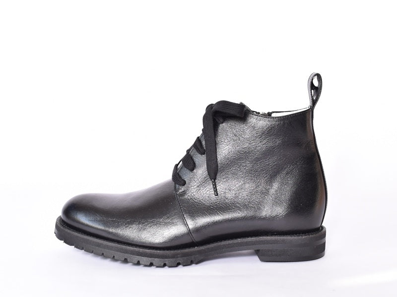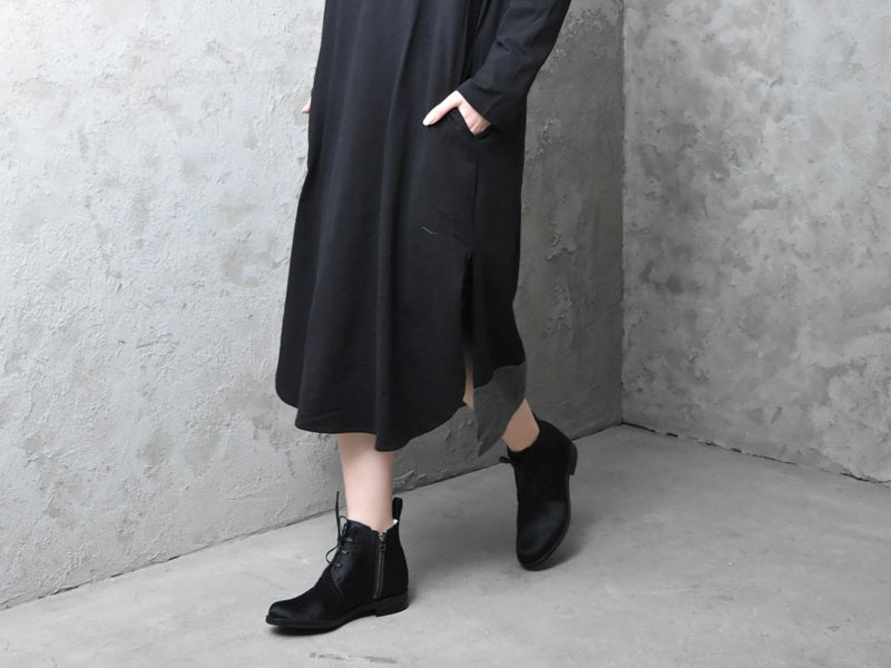 マニッシュなフォルムが印象的なショートブーツ。少しボリュームあるエンジニアタンクソールはスポンジ材を重ねて作られているので見た目よりも軽量で、履きやすく疲れにくい仕様。