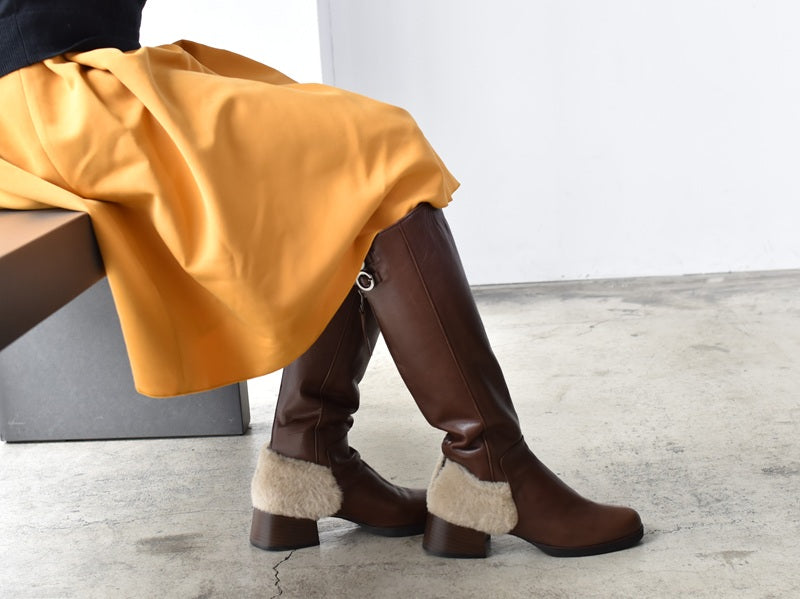 1039 プラットフォームムートンコンビロングブーツ AL1929LB Darkbrowncombi 木型No.H2546